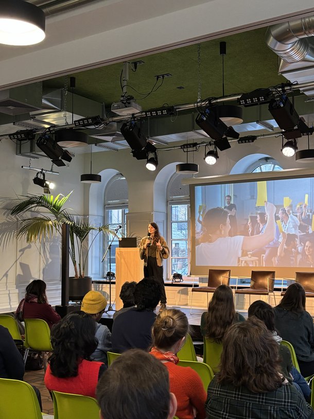 Molly Stenzel stellte die Pläne des Berlin Global Village für einen neuen Digital Hub im Zentrum vor, und die Kooperationspartner*innen lernten sich gegenseitig und ihre neuesten Projekte kennen. Organisationen wie wie DreamSpace Academy und mediale pfade (bald Teil des Berlin Global Village) teilten ihre Visionen für 2026 und gingen anschließend in vertiefende Austauschformate.