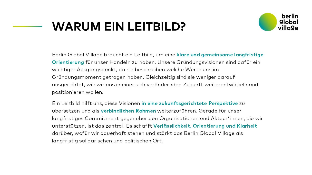 Berlin Global Village Leitbild Entwicklung: Projekt Plan