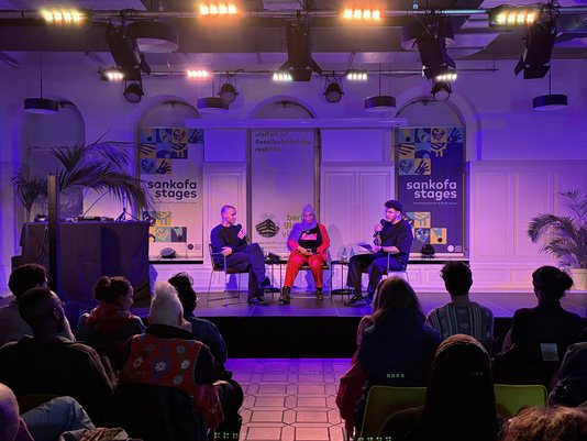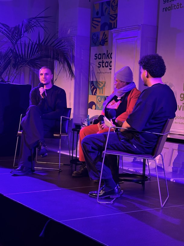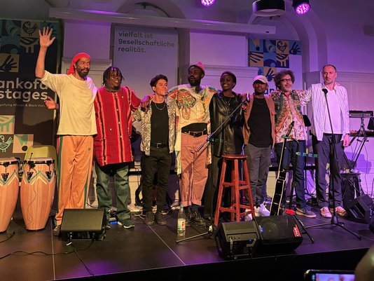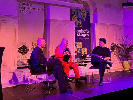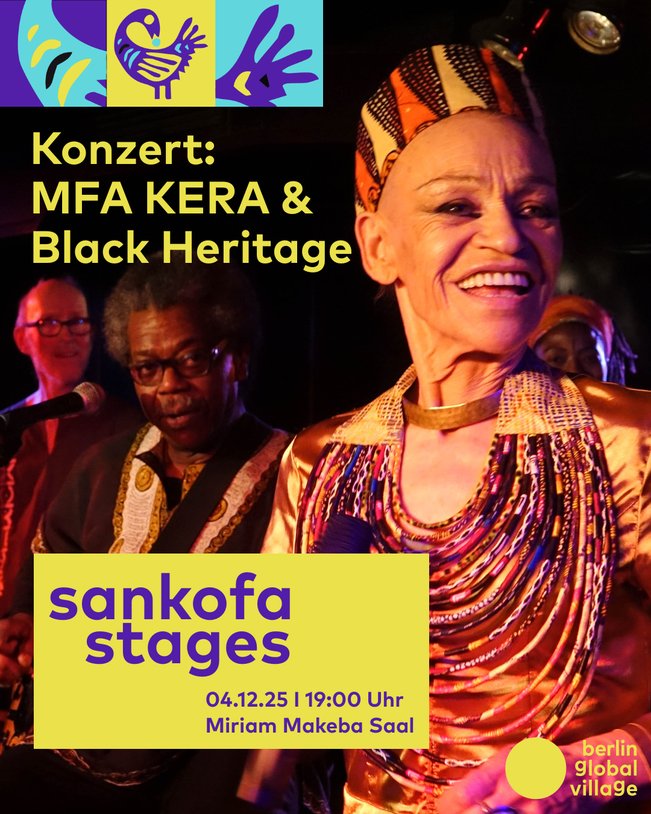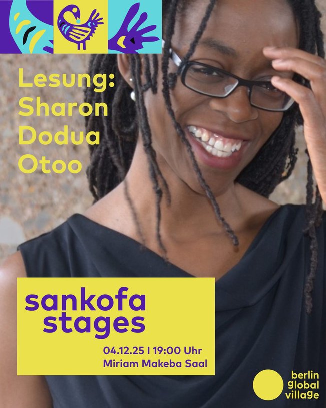 Starting in October 2025, Sankofa Stages launches a new cultural series at Berlin Global Village, centering African and Afro-diasporic perspectives. Over the course of three evenings, the series will create a space that celebrates the creativity, diversity, and vitality of African and Black art and cultural production in Berlin. Each evening combines two artistic forms, creating new connections – for example, between an exhibition and a concert, a reading and a performance, or a film screening and a DJ set.